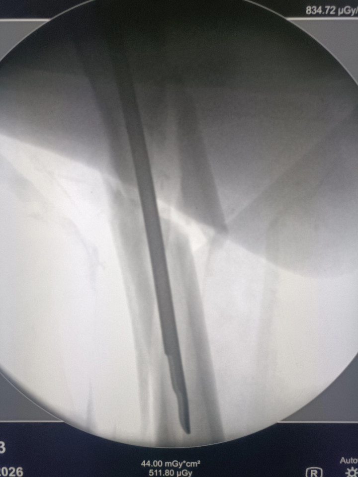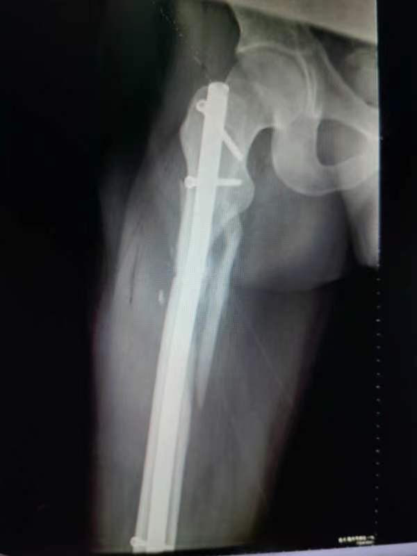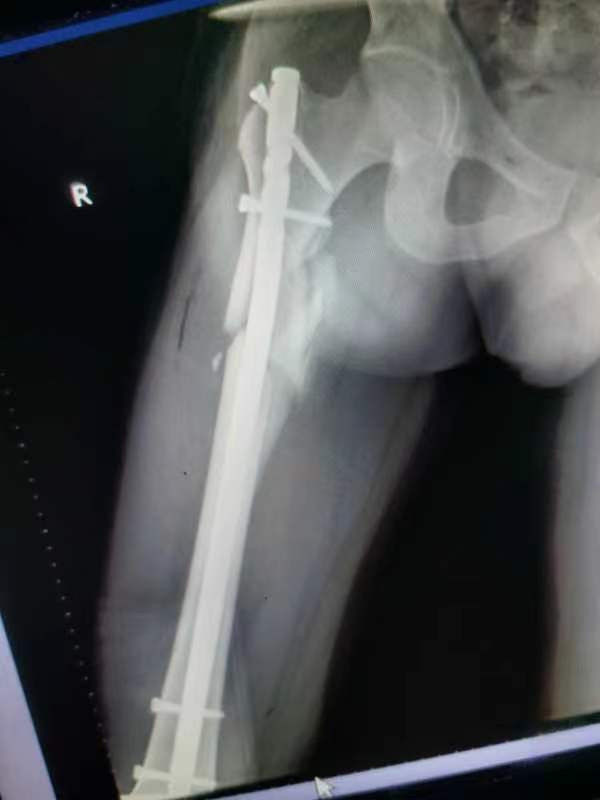 中股网 外伤导致的股骨上段骨折闭合复位股骨重建钉固定,期待早期愈合