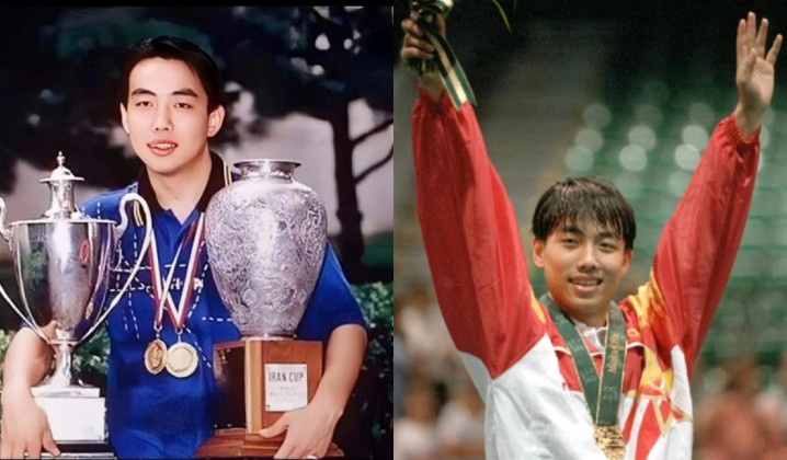 决赛中,刘国梁出人意料1-2不敌老瓦、孔令辉被刺激到0-2输给佩尔森!大比分0:2的绝境时刻,初出茅庐的刘国正顶住压力稳稳的以21-6 21-16轻松解决卡尔松为中国队争得一线生机,给两个哥哥赢来再上场的机会。