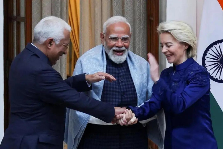 第一件事,今年金砖的轮值主席国正好是印度,而印度最近这段时间跟西方走得格外近,一月份才刚刚跟欧盟签订了自贸协定,双方关税一下子就降了下来,两国之间超过九成的贸易往来都实现了免税。